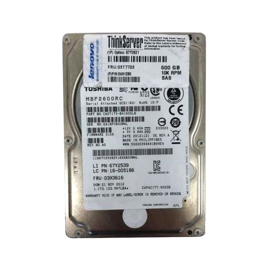 Lenovo 03T7703 600GB 10000RPM SAS 6Gb/s 16MB Cache 2.5-inch Hard Drive